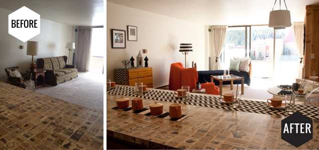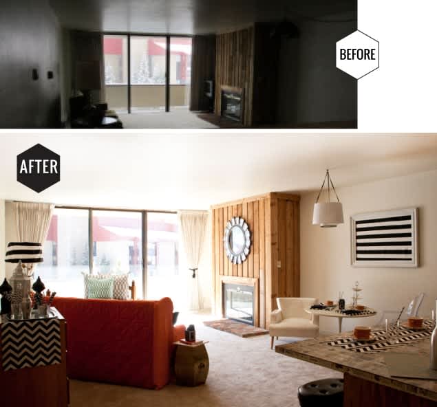 Don’t be intimidated. We aren’t tackling tearing down walls or installing new countertops. We’ll stick to surface changes that can be accomplished using a tiny budget to achieve big results. For this 1976 condo, the interiors were initially a bit daunting, but we were confident that if we focused on the positive aspects of the space, we could help the buyers envision this as their future second home. The condo is filled with beautiful natural light, a spacious and open living room and kitchen area, two full bathrooms, and an lovely outdoor patio. We knew we could turn this retro gem into modern stunner. Follow along as we show you how we implemented each of these steps.