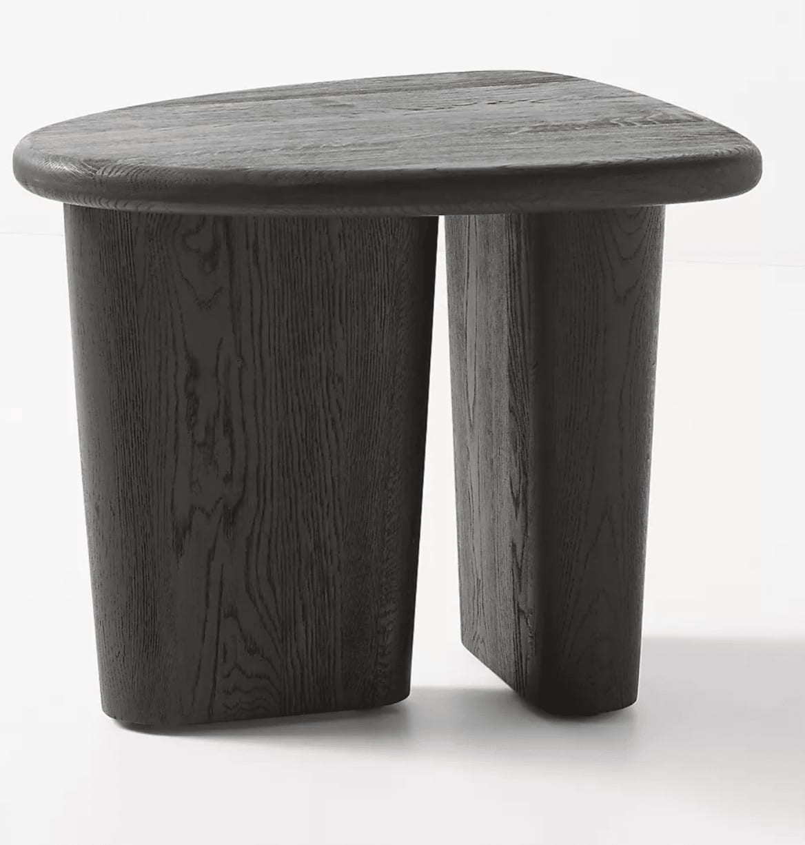 Even neutral spaces need a touch of black for grounding. The asymmetrical lines of this black-stained wood table achieves both form and function. Kalle Sculptural Oak Side Table, $418,