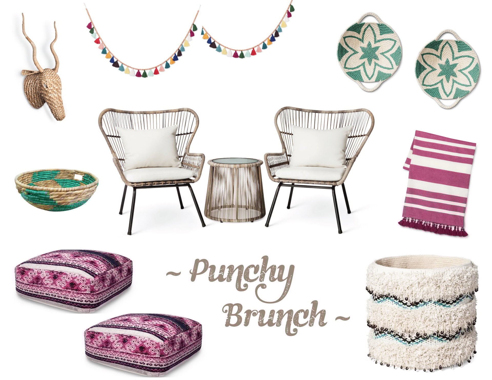 We got a sneak peek at the new ThresholdTM line from Target! We’re swooning over the natural textures and vibrant patterns. We created two different looks to increase your patio appeal! If you’re drawn to more subdue and neutral palette, up your wow factor with our Bohemian Chic selections. If a fresh color pop is more your style, try our Punchy Brunch finds. Either way, you’re on your way to creating your own outdoor oasis...
