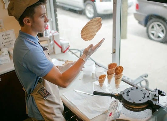 Handmade takes on new meaning at this old-fashioned confectionery shop. Try the hand-tossed waffle cones, homemade ice cream, and fudge.