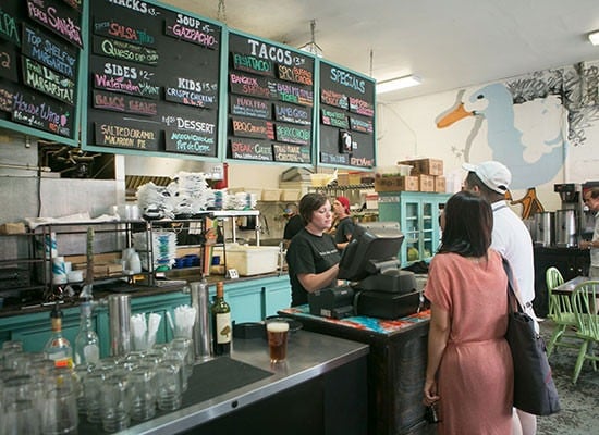Thai Peanut Chicken, Bangkok Shrimp, and Banh Mi Tofu - these are life-changing tacos! We literally can't say enough about this joint.